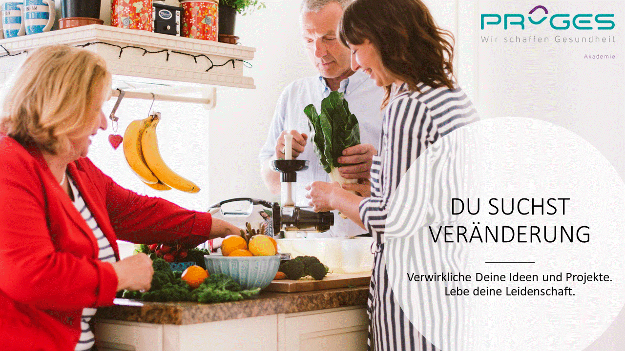 Wenn man nicht weiß, wie man sich gesund ernährt, ist es oft schwer die richtigen Entscheidungen für sich und seine Lieben zu treffen. Als Gesundheitsexperte/in wird man oft gefragt, was man tun kann um Abzunehmen, bessere Haut zu bekommen, endlich seine Verdauungsprobleme in den Griff zu regulieren und vieles mehr. Nicht jeder/e möchte oder kann jahrelang Diätologie studieren; er/sie will aber trotzdem den eigenen Körper besser verstehen lernen, um das eigene Wohlbefinden und auch das seiner/ihrer Familie und Freunden zu verbessern. Wie wäre es mit einem Kompromiss? Die Ausbildung zum Diplomierten Ganzheitlichen Ernährungstrainer! Werde Teil der GET-Family und informiere dich jetzt über unsere ganzheitliche online Ausbildung! Wir freuen uns auf dich, dein PROGES GET Team!
